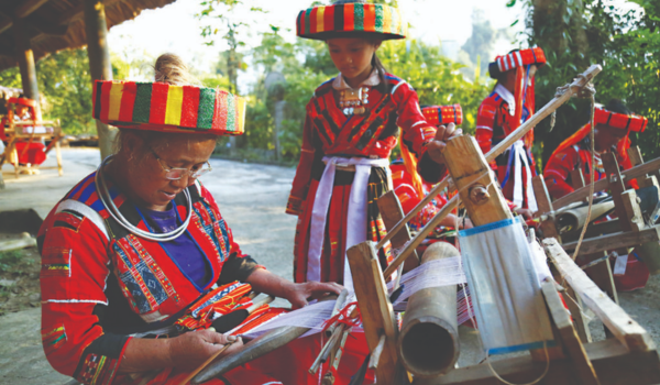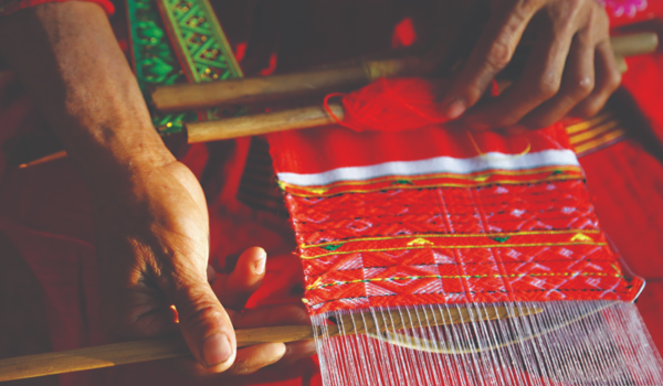 Le tissage de brocatelle pour la fabrication de costumes traditionnels.