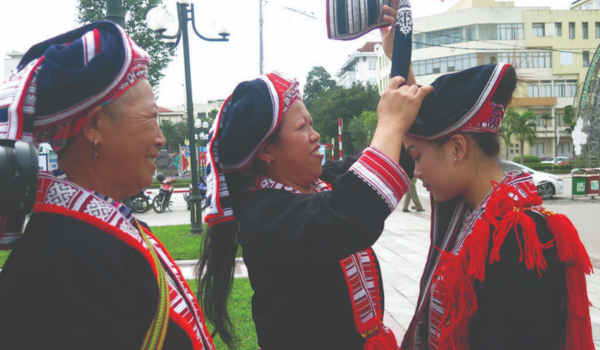 Le costume traditionnel des femmes Dao rouges a deux couleurs de base : le noir et le rouge. Selon leurs croyances, le rouge apporte bonheur, chance, plénitude et crée une énergie positive. Outre les couleurs, les fabricantes montrent leur ingéniosité, leur minutie et leur talent en broderie à travers de magnifiques motifs ornementaux. C’est pourquoi la beauté exceptionnelle de leurs costumes impressionne.