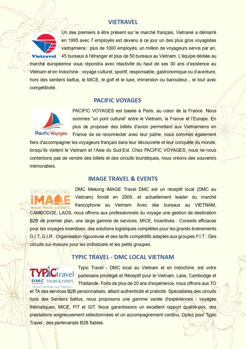 Autres services touristiques